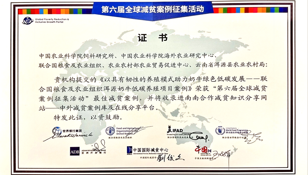 饲料所奶牛绿色低碳发展案例入选第六届全球最佳减贫案例